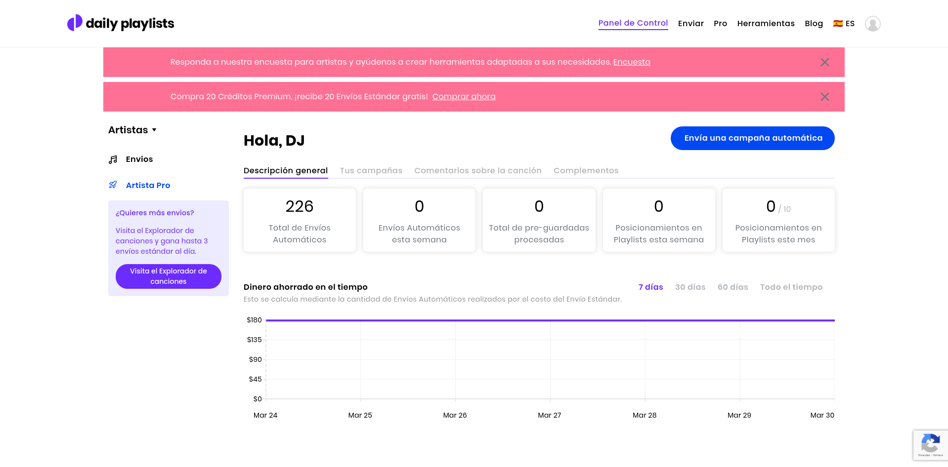 Is been like 2 or 3 weeks )since 10th-18th march without automatic playlist send while being on the artist pro tier.
