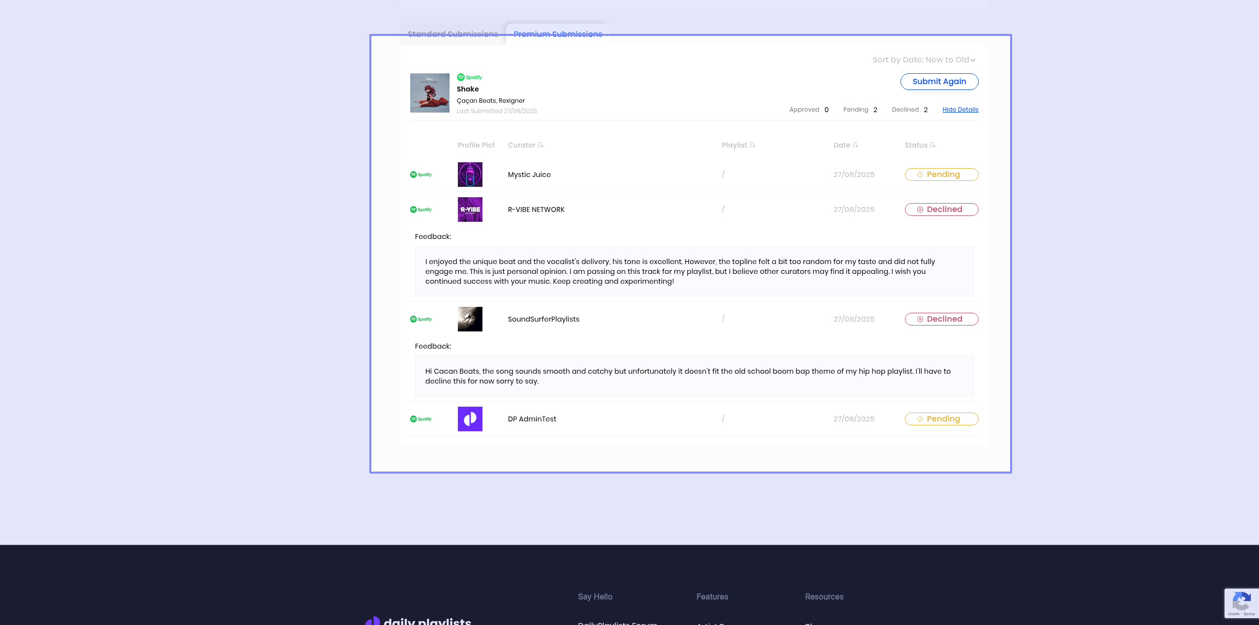 hey ıts a classic answer . ı check all music from this curators playlists we style very similar but they didnt add . sory ı dont use agein daily playlist pro . and ı will publish it ınterwiew in from turkey